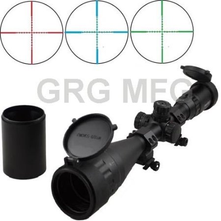 Multi-coated optics 6061 T6 Aircraft Grade Body Ball and Bearing Windage/Elevation adjustment for precision and superior shock resistant Test fired on .50 Cal Front AO Adjustment with Mil-dot reticle with Red, Blue and green illumination