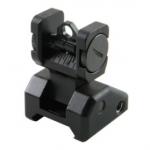 PSA Aluminum Flip up rear sight. American made. Dual aperture rear sight with windage adjustment. Mounts to pictinny rail. Sight flips up with a sturdy snap and no wobble. Steel locking helicoil...
