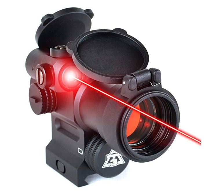 AT3 LEOS Red Dot Sight with Integrated Red or Green Laser Sight - 2 MOA Red Dot Scope with Flip Up Lens Caps
