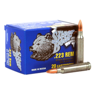 Barnaul Silver Bear .223 Rem 55gr Full Metal Jacket (FMJ) Zinc Plated Ammo 20 Per Box/ 25 Per Case S223FMJ - FLAT RATE Shipping!!