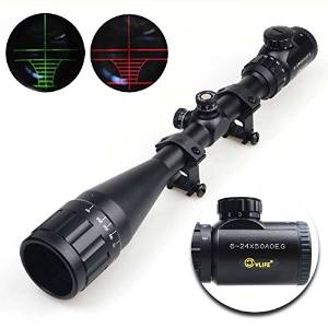 CVLIFE Optics Hunting Rifle Scope 6-24x50 AOE Red & Green Illuminated Crosshair Gun Scopes With Free Mounts