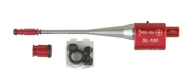 Saves range time and ammo; highly accurate laser system lets you zero your scope to point-of-aim at 100 yards, before you go to the range. Quick and easy to use, just place the special laser target 25 feet away and aim the laser at it, then adjust the scope till the crosshairs align with the target. Works equally well with red dot scopes and iron sights. Laser is mounted to a cone shaped, aluminum spud. An O-ring and a powerful magnet hold the spud centered in the bore. No special adapters to buy and no metal contacts the rifling. A system of adapters and O-rings lets one unit fit all firearms from .22 to .50 caliber, plus 12 and 20 gauge shotguns. Also includes the SRL-100 adapter that slips over the Boresighter's lens to convert it into a highly accurate Scope Reticle Leveler by refocusing the laser to a horizontal beam for precise crosshair alignment. SL-100 Standard Model for use indoors, where you have control over ambient lighting. SL-150 Ultra-Mag has an ultra-bright Red 635mm laser for better visibility in bright, ambient light conditions. SL-500 Ultra-Mag uses a super-bright green laser for maximum visibility of the sighting dot in daylight and very bright ambient light. SPECS: Aluminum. Includes (2) adapters, (12) O-rings, (2) cardboard target cards, SRL-100 adapter, instructions, and plastic storage case. SL-100 - 6-1?8” (15.6cm) OAL without adapter, 4-1?8” (10.5cm) long spud. Uses (2) #357/ LR-44 batteries, included. SL-150 – 6-5?8” (16.8cm) OAL, 4ј” (10.8cm) long spud. Uses (1) CR2 lithium battery, included. SL-500 – 7Ѕ” (19.1cm) OAL, 4ј” long spud. Projects a green sighting dot. Uses (1) CR123 lithium battery, included.
