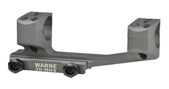 The LR-SKEL Mount offers 20 MOA built-in slope for long range precision shooting. This allows additional elevation adjustment in your optic when shooting ranges over 600 yards. The LR-SKEL Mount is CNC precision machined from 6061 aluminum and Warne has been able to reduce the weight by over 30%, compared to our R.A.M.P. Mount by utilizing a skeletonized body and ring caps. The LR-SKEL provides an additional inch of forward cantilever, compared to the original SKEL Mount to provide proper eye relief when using scopes with large eye boxes and gives extra space behind the mount for accessories like the Warne A645 45° side mount adapter.