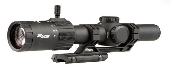 TANGO MSR 1-6X24MM SFP ILLUMINATED RIFLE SCOPE W/MOUNT No one understands the need for unquestioning accuracy better than SIG SAUER®. Their tactical riflescopes have been developed for long range hunters, and competitive shooters for one reason: When you take your shot, it will count. FEATURES: High Performance 6x optical system with low dispersion glass Integrated thread-in throw leaver for quick magnification changes Illuminated MSR BDC-6 reticle with 11x brightness levels Lay flat flip-back lens covers included Dependable waterproof, shockproof, and fog-proof performance Includes ALPHA-MSR one-piece aluminum cantilever mount SPECIFICATIONS: MAGNIFICATION: 1-6x OBJECTIVE LENS DIAMETER: 24 MM WEIGHT: 18.5 oz ILLUMINATION SETTINGS: 11 MAINTUBE DIAMETER: 30 mm TOTAL ELEVATION TRAVEL: 100 MOA TOTAL WINDAGE TRAVEL: 100 MOA TRAVEL PER ROTATION: 44 MOA EYE RELIEF LOW (IN): 3.93 EYE RELIEF HIGH (IN): 3.74 FIELD OF VIEW LOW (FT @ 100 YARDS): 124.8 FIELD OF VIEW HIGH (FT @ 100 YARDS): 19.6 DIOPTER ADJUSTMENT RANGE: +/- 2.5 OBJECTIVE OUTER DIAMETER: 30 mm MOUNT INCLUDED: YES BATTERY: CR2032 FOCAL PLANE: Second RETICLE: Illuminated BDC6 OR HELLFIRE FL-6 ILLUMINATION: Yes